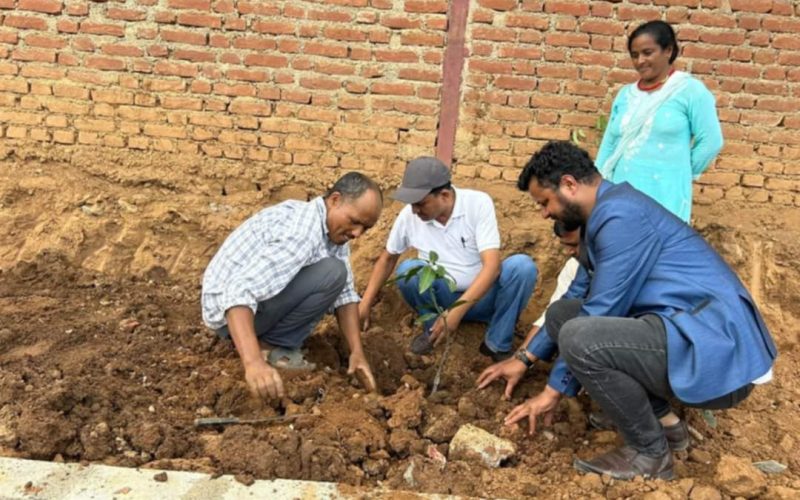 मावि सेन्टर स्कुल परिसरमा महतारा दम्पतीकाे सक्रियतामा फलफुलका बिरुवा राेपियाे