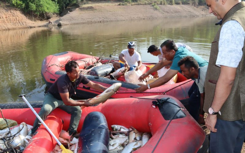 घोराहीमा कृत्रिम चेपे जलाशयबाट निकालियो माछा