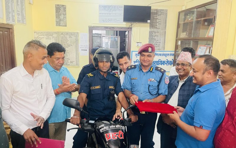 तुलसीपुर उद्योग वाणिज्य संघले दियाे प्रहरीलाई माेटरसाईकल