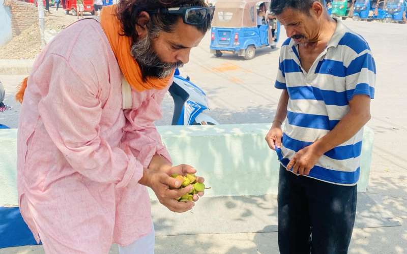 तुलसीपुरमा निशुल्क लिच्चि बाँड्दै हिँडेका उपेन्द्र