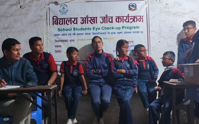 सगरमाथा स्कुलमा विद्यार्थीको आँखा जाँच , दृष्टिदोष देखिएका लाई निःशुल्क चश्मा